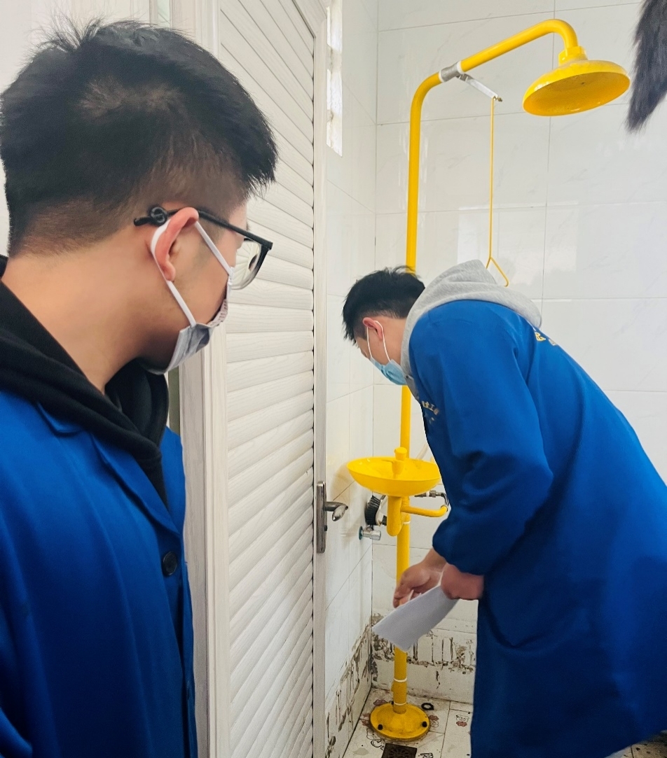 实验室结合实际案例就常见火灾、实验室爆炸、酸碱灼伤、人员中毒、人员触电等突发事故场景开展了应急救援和疏散演练。演练期间,所有参演的实验人员都认真按照既定方案完成演练,并由熟悉灭火器的同学手把手地展示了火灾初期如何正确灭火处置。随后,针对本实验室可能存在的安全风险及应对措施进行了逐一讲解,并对危险应急自救处置方法、各类消防器材的正确使用、消防逃生通道、常见医疗物资的使用进行了演示。