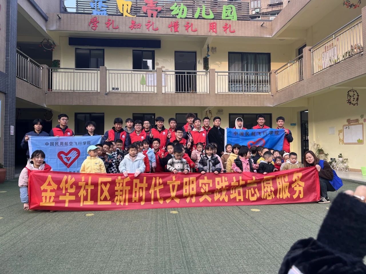 本网讯,赵博、罗伶、游国瑀、韦万紫拍摄报道为了让孩子们了解航空知识,体验飞行的魅力,近日,中国民用航空飞行学院志愿者来到了金华社区蓝贝壳幼儿园,为孩子们组织了一场别开生面的志愿活动。