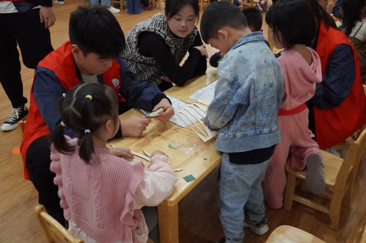 讲解结束后,志愿者们带着小朋友耐心拼装C919的飞机模型,在拼装过程中讲解飞机的结构,小朋友们乐在其中。