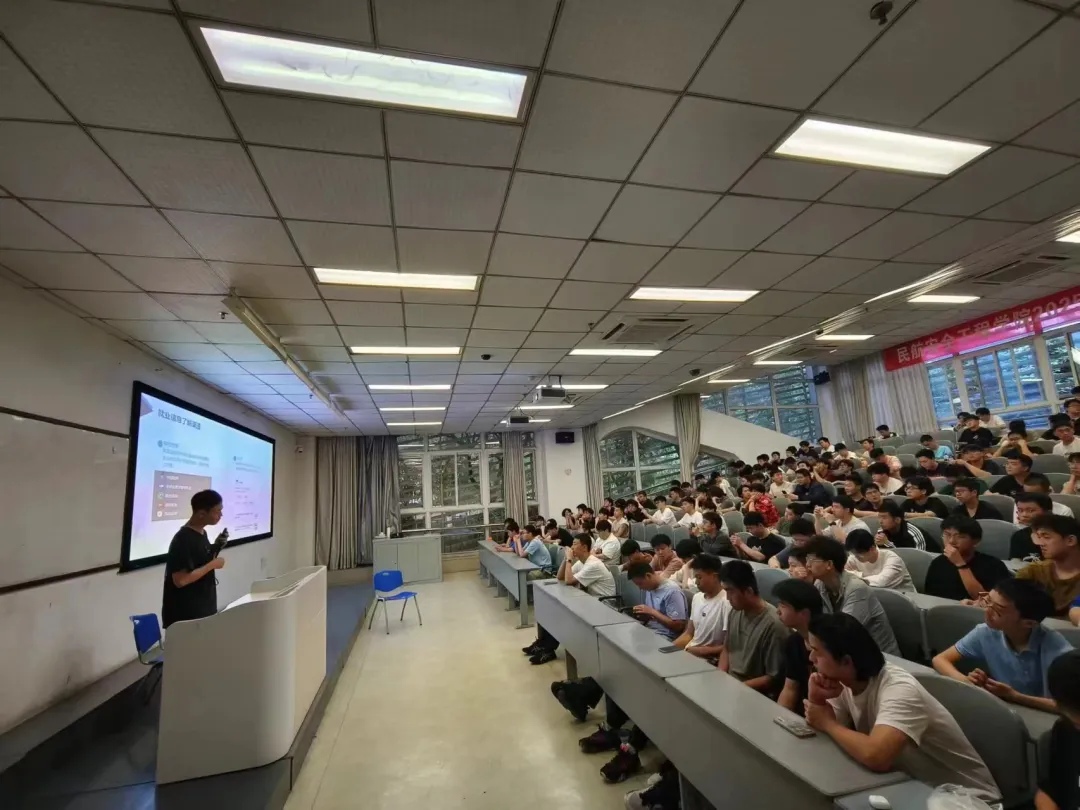 几位毕业生以求职就业时间线切入,分别详细介绍了招聘流程、国企与私企的不同性质与各自优势,深入分享了简历制作技巧,以及如何在面试中充分展示,并鼓励同学们放宽眼界,结合自身定位及目标,做好职业规划,多方位多渠道考虑就业,整场分享会干货满满,现场气氛热烈。