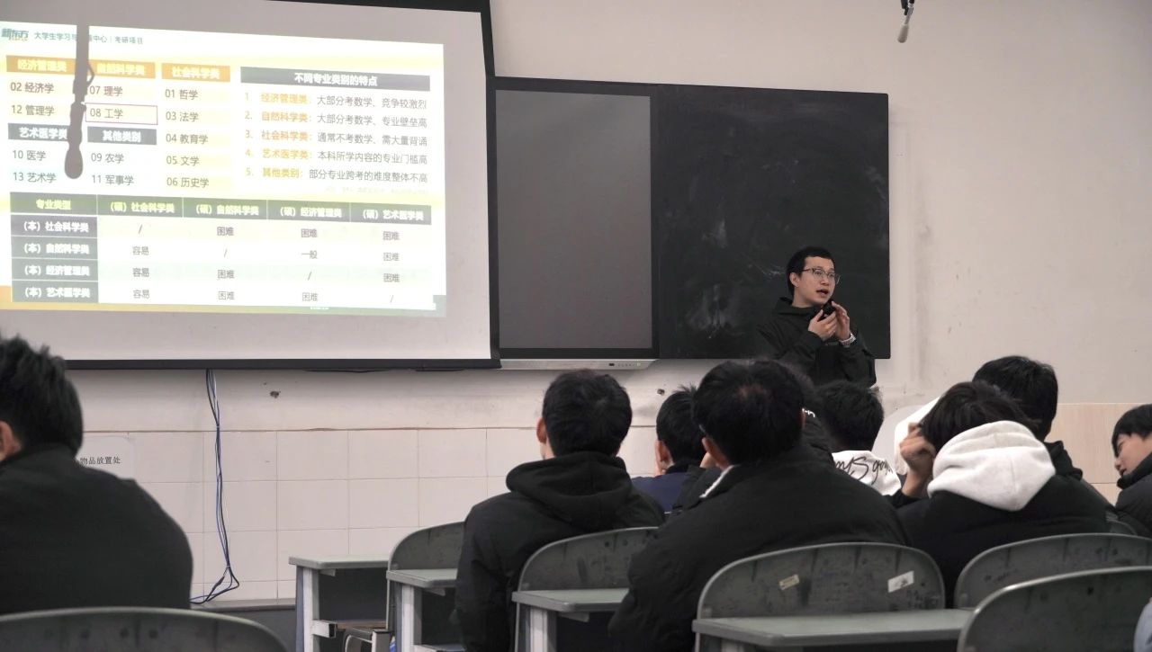 讲座当日,现场座无虚席,气氛热烈。本次讲座特邀资深讲师,以深厚的专业底蕴和丰富的教学经验,为同学们带来了一场知识盛宴。在院校专业选择的关键环节,讲师凭借精准的剖析,结合详实的考研数据,深入解读各专业的发展趋势与就业前景,助同学们穿越志愿填报的迷雾,锚定理想目标。