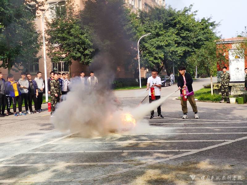 为让同学们更充分的了解消防器材的使用方法,消防支队队员们在现场模拟火灾,并演示灭火器的正确操作方式。在场的学生也参与进来,亲身学习如何使用灭火器扑灭火源。