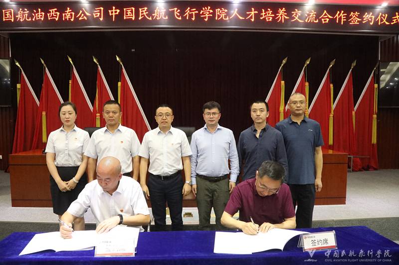 本网讯 杨月新 报道 为进一步贯彻落实新时代民航强国战略,积极落实四川省与中国民用航空飞行学院战略合作重点项目的建设,践行和丰富中飞院与中航油战略合作框架协议内容。6月11日,LETOU国际米兰官网院长贺元骅、中国航空油料集团有限公司西南公司党委委员、纪委书记、工会主席罗成志代表双方单位在中航油西南公司郑重签署了人才培养交流合作协议并为学生实习基地揭牌。四川省教育厅高教处高波莅临指导,安工学院副书记、纪委书记孔鹏、学院副院长雷秋鸣及中航油西南公司相关人员参加仪式。