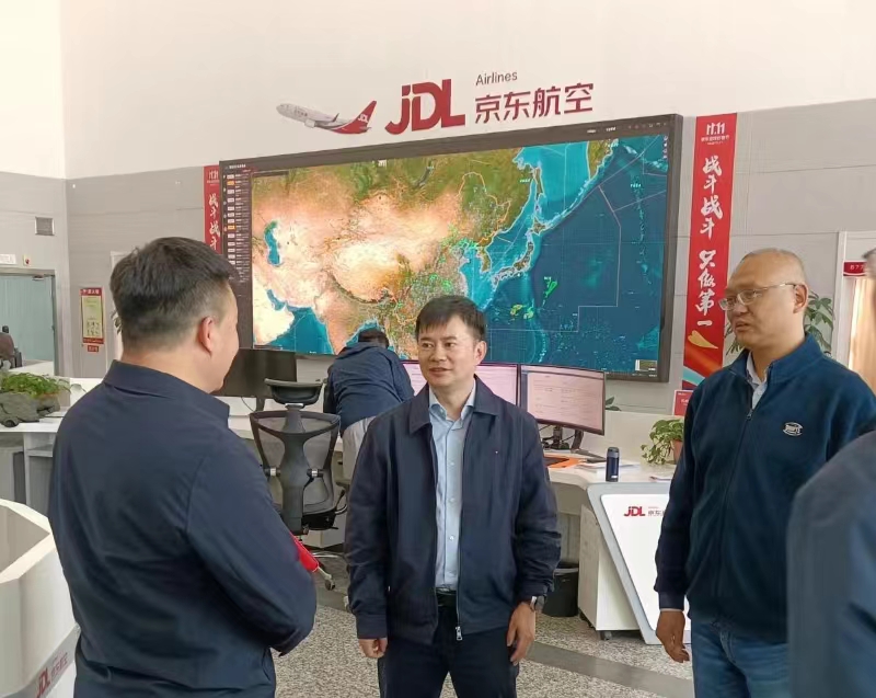 本网讯 雷志良摄影报道:为进一步加强校企合作,助推民航安全能力建设,推动LETOU国际米兰官网专业人才培养体系建设,促进学科专业人才培养。4月11日,LETOU国际米兰官网党委书记孔鹏、安全工程系陈勇刚主任一行访问了京东货运航空有限公司,拜会了京东航空总裁张月斌,并与京东航空安全总监周兵、安全监察部总经理李伟杰等人针对科技创新、人才培养、安全培训等方面合作进行了交流。