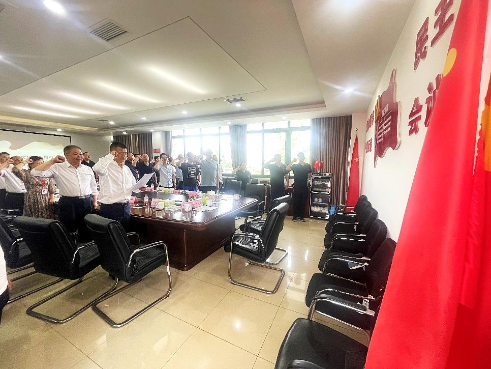 最后,三个党支部40名党员,面对鲜红的党旗庄严宣誓,集体重温入党誓词。