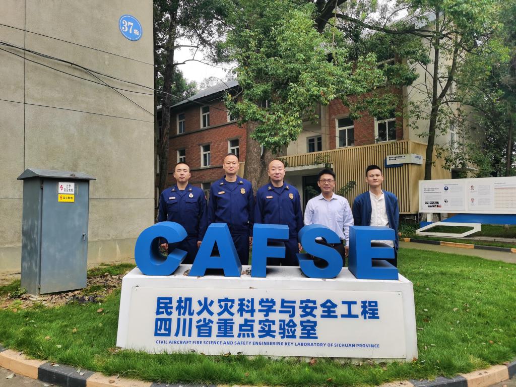 会后,消防工程系刘全义主任陪同广汉市消防救援大队一行前往民机火灾科学与安全工程四川省重点实验室参观交流。