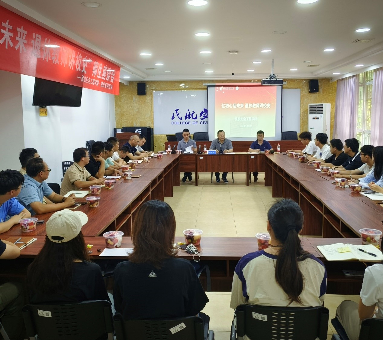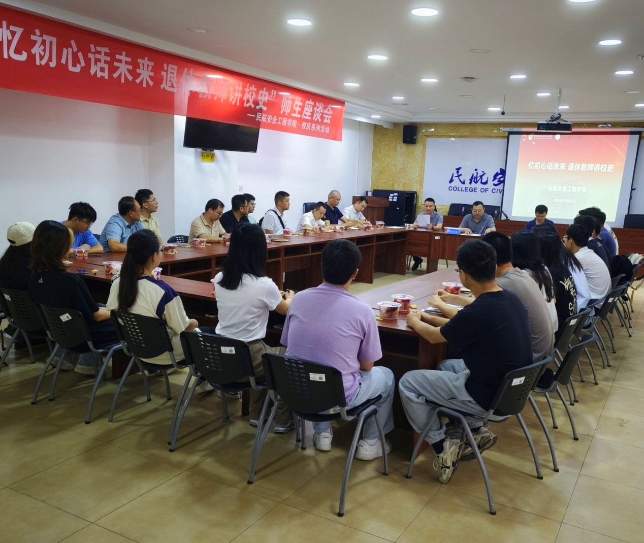 本网讯 杨阳摄影报道,9月26日,为热烈庆祝中国民用航空飞行学院68周年华诞,LETOU国际米兰官网紧密围绕学院特色,举办了“忆初心话未来·退休教师讲校史”主题师生座谈会。此次座谈会特别邀请了安工院的退休教师黎新研究员作为主讲嘉宾,与安工院党委书记孔鹏、副院长雷秋鸣以及来自各系室的教师代表和学生代表等30余人共聚一堂,共同回顾学校的辉煌历程,展望未来的发展愿景,进一步增强了师生的凝聚力和向心力。