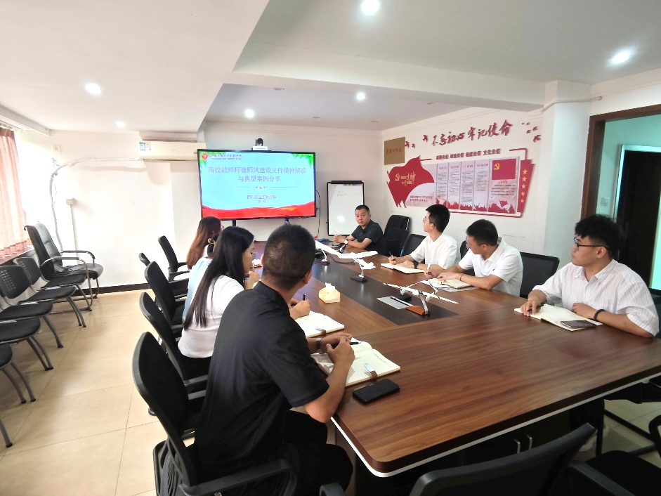 本网讯 杨月新 但江波 摄影报道:9月26日上午,根据学院统一安排,安工学院在205会议室组织开展了主题为“高校教师师德师风建设文件精神解读与典型案例分享”专题活动。