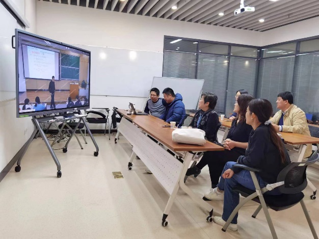 在本学期,课程团队充分利用现代信息技术的优势,借助学校智慧教学云平台,能全景重现教师上课场景的功能,创新同行评议形式,展开集体同行听课的模式。我们每次选定一位教师的一次课堂实录视频,团队全体成员集中观看该教师授课,听课过程团队成员各抒己见,发表对视频教学手段、教学方法、教学内容处理的意见和建议,从而达到了实时反馈的效果,做实同行评议的效果。