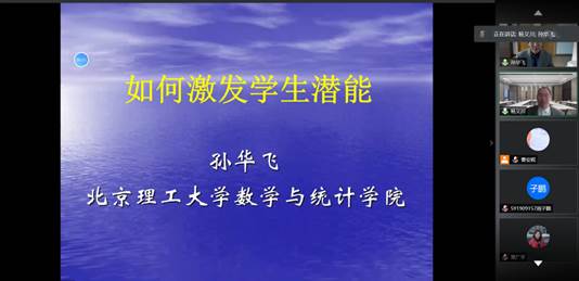 12月30日,“北航数学教学研究中心名师讲座” 首次线上报告活动顺利举行。北京理工大学孙华飞教授为学院师生作了《如何激发学生潜能》专题讲座,该报告吸引了来自北京地区包括北大等高校、以及江西、云南等地多所高校的师生在线学习交流。讲座由北航KY开元集团官网入口本科教学副院长杨义川教授主持。