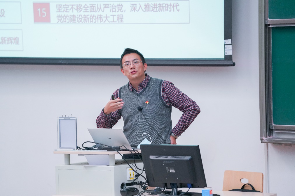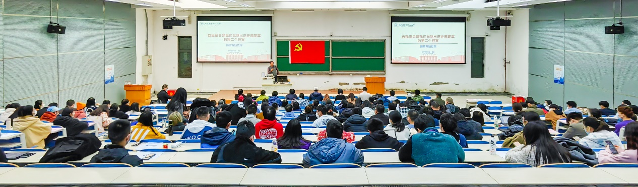 1116日下午,数学学院党委书记袁星在J0-001为学院全体党员讲授“自我革命是我们党跳出历史周期率的第二个答案”专题党课,组织学院深入学习宣传贯彻落实党的二十大精神。