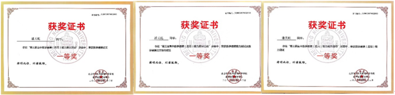 在近日结束的第三届高中数学建模(应用)能力展示活动中,KY开元集团官网入口依托“英才计划”,由院长韩德仁教授牵头,指导北京市陈经纶中学学生潘天屹完成作品“智能机器人停车泊位最优路径的研究分析”,斩获数学建模(应用)能力测试一等奖、数学建模论文一等奖和综合成绩一等奖。