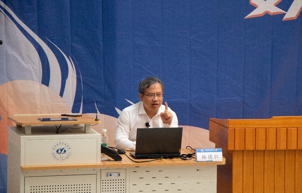 开学仪式结束后,学院院长韩德仁为新数学人讲授“开学第一课”,从历史沿革、师资队伍、学科建设、人才培养、国际交流、文化建设等方面系统地介绍了数学学院的发展现状,同时希望各位新数学人充分感悟数学之美,激扬对数学的热爱,与学院双向促进、共同成长。
