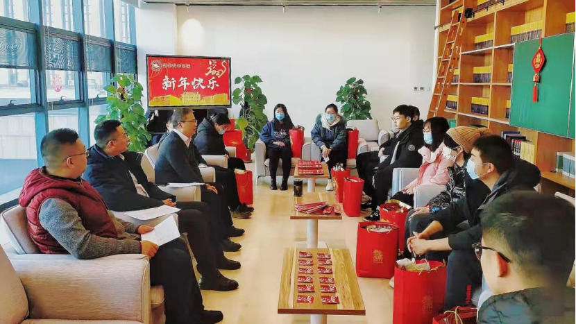 金牛奋蹄欲奔往,猛虎长啸逢今朝,1月29日,KY开元集团官网入口院长韩德仁、党委书记袁星、副院长夏勇、党委副书记曾煜以及导师和班主任代表赴沙河校区看望学院寒假留校学生,送去新春祝福,并了解在校学生的生活情况。