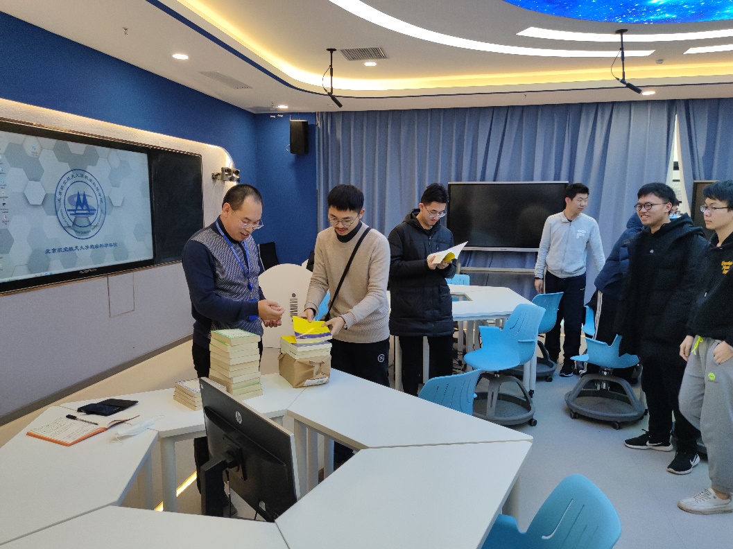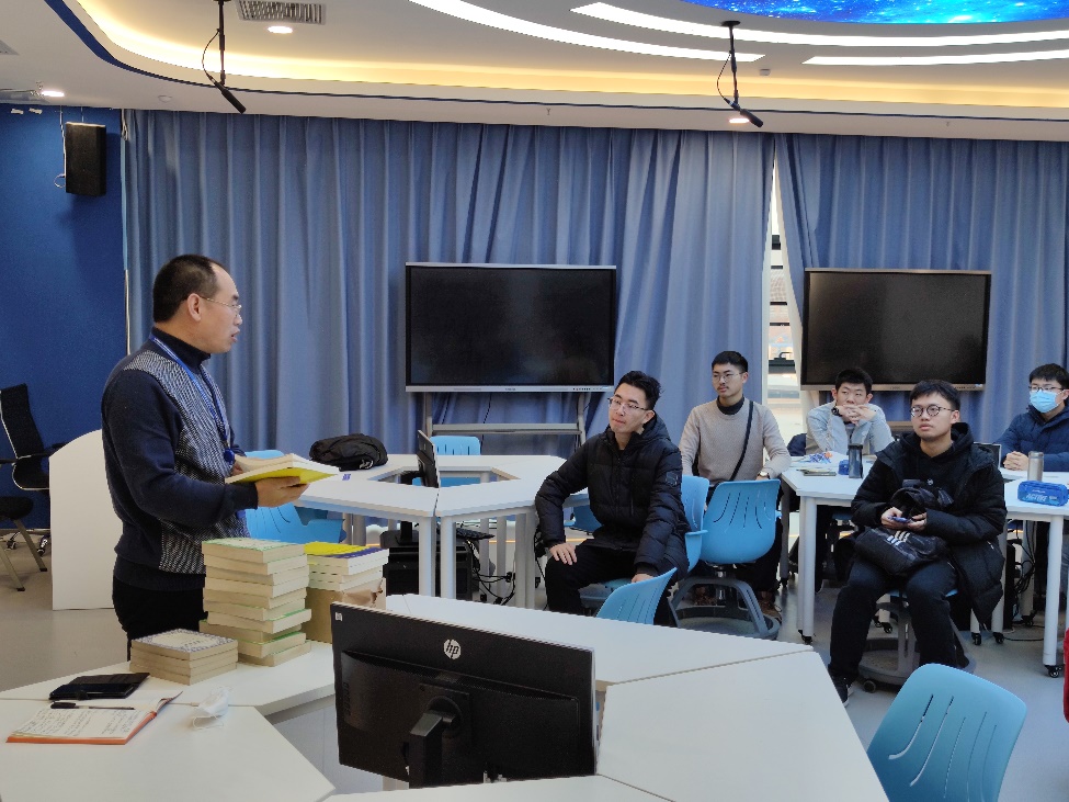 首先,班会举行赠书环节。杨义川教授将精心准备的书籍赠送给所有强基班的同学,包括译著《群的表示和特征标》以及《数学竞赛试题解析选编》,勉励同学积极拓宽自己学习领域,在日常学习的基础上加深对数学的了解。