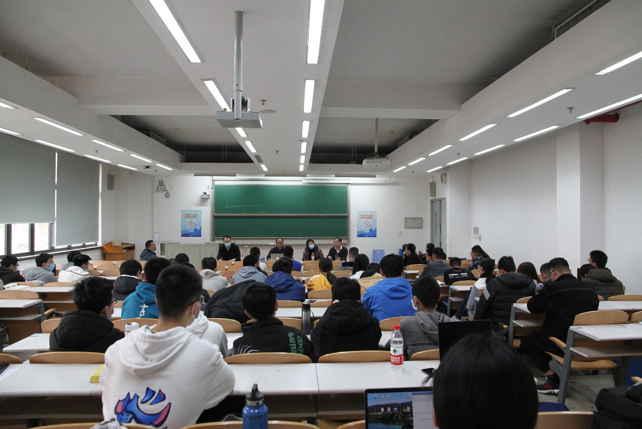 颁奖典礼前,中科院—北航华班座谈会在J5-101举行。巩馥洲老师和戴虹老师就同学们提出的有关中科院教学理念和方法、课程设置以及升学建议等方面的问题予以解答。同学们结合自己在北航华班的经历,在举办研讨班,增进学生课程兴趣,与其他高校课程共享、学分互认等多方面提出建议。巩老师指出,对于数学,重要的不是学了多少书本的知识,而是培养批判思维,提出问题、回答问题,勇于“抬杠”,同时要有创新能力,敢于“胡说八道”,大胆假设、小心求证。