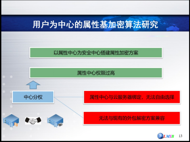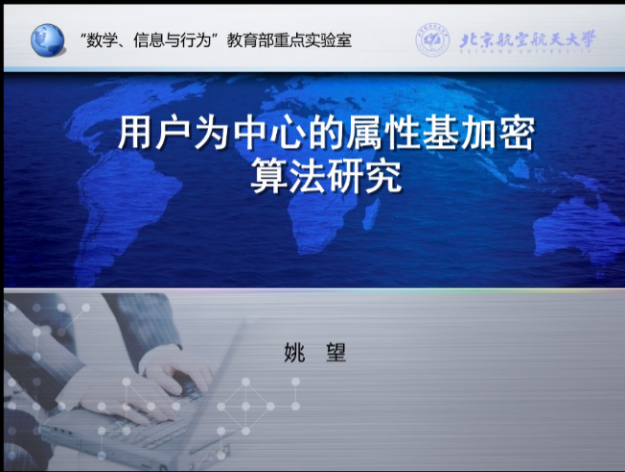会议共两个报告,报告人分别是姚望博士和李卫华博士。姚望博士的报告题为“用户为中心的属性基加密算法研究”,他从新的可证明安全性的安全假设设计出发,介绍以用户为中心的属性加密算法研究进展,新算法结合用户参与的多方密钥生成算法和用户密钥转化算法,旨在增强算法密钥生成过程中抵抗合谋攻击的能力,同时提升算法解密操作的效率,以期为属性加密算法的实用化发展提供新的技术途径。