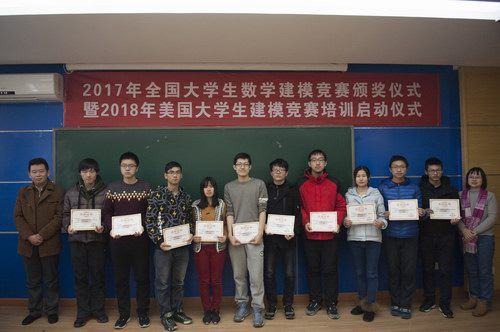 2018年1月11日下午, 2017年全国大学生数学建模竞赛颁奖仪式暨2018年美国大学生建模竞赛培训启动仪式在主楼213会议室顺利进行。
