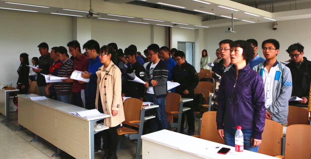 最后,全体学员起立奏唱国际歌,KY开元集团官网入口数学与系统科学学院学生党校开学典礼暨第一堂党课在雄浑激昂的国际歌中圆满的落下了帷幕。