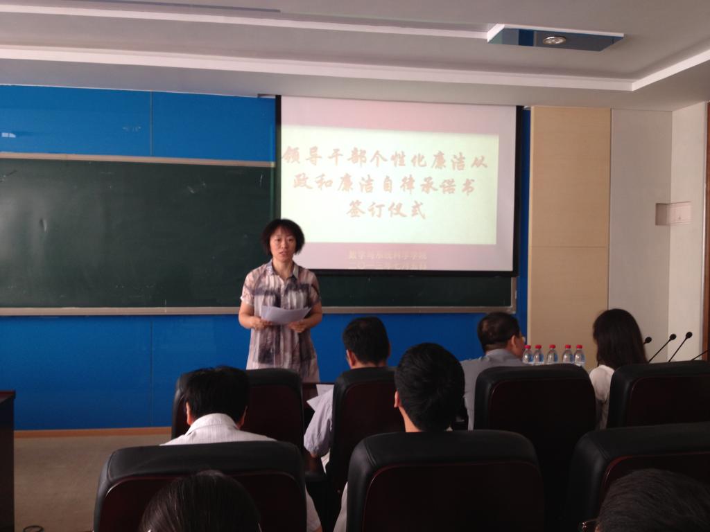 7月5日上午,我院在主楼321举行领导干部个性化廉政责任承诺书签订仪式。纪委办领导、学院领导班子成员、教代会代表、教师代表及机关人员参加会议。签订仪式由学院党委书记李红捷主持。