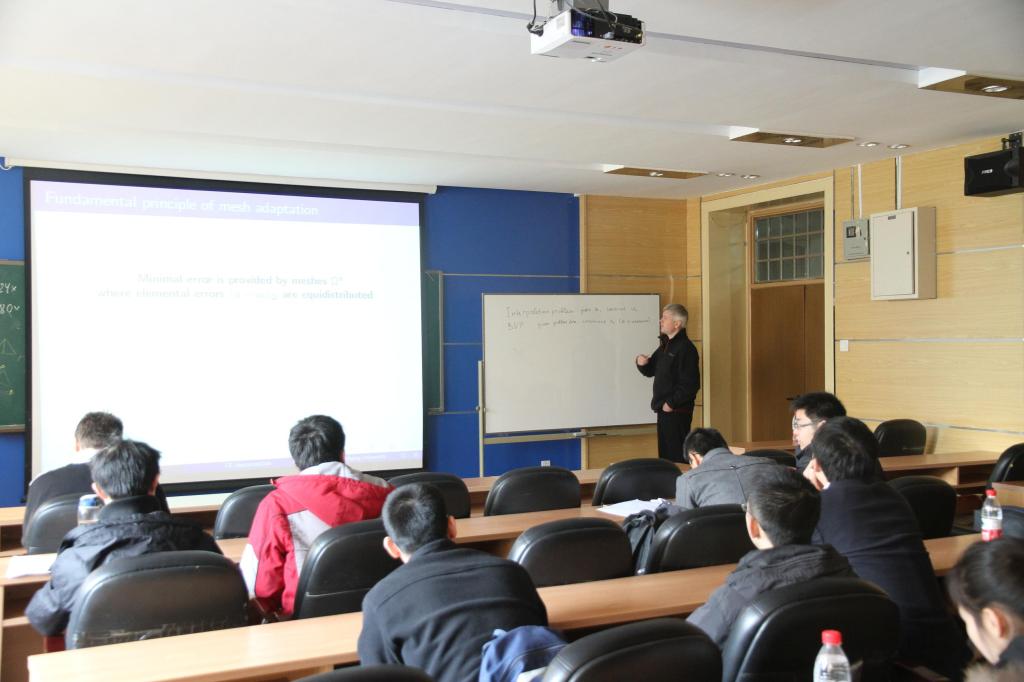4月1日,Yuri教授就非结构三角自适应网格的生成,有限元方法的误差估计等技术做了详细的介绍。4月2日上午,Yuri教授为我们展示了俄罗斯科学院在自适应非结构网格的生成和边值问题的自适应求解等方面所取得的研究成果。
