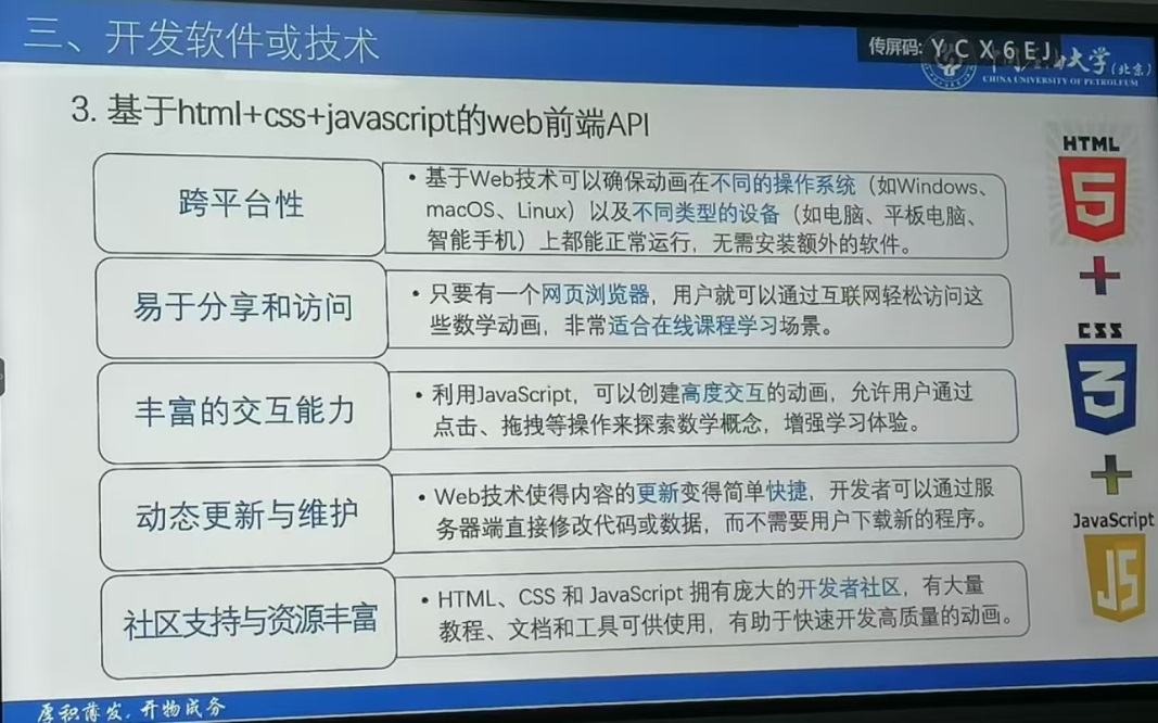 在讲座中,刘教授分享了自己带领课程团队20多年来使用多个常用数学教学演示软件平台开发大学数学课程可视化的教学实践经验,并总结了各个平台的优缺点,着重介绍基于html+CSS+javascript的大学课程(包括高等数学、线性代数、概率论等)中的多个知识点的可视化交互演示平台开发与应用,并现场演示了10多个知识点的可视化结果。这些可视化成果对将抽象的数学概念和数学理论直观化、通过学生动手参与实验演示,调动学习积极性,提高学习效果起到了显著的作用。