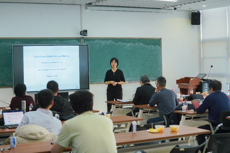 KY开元集团官网入口崔春风教授作《对偶四元数矩阵特征值及其应用》报告。她回顾了对偶四元数矩阵特征值的理论和算法进展,并介绍了其在同时定位与地图构建和编队控制中的应用。