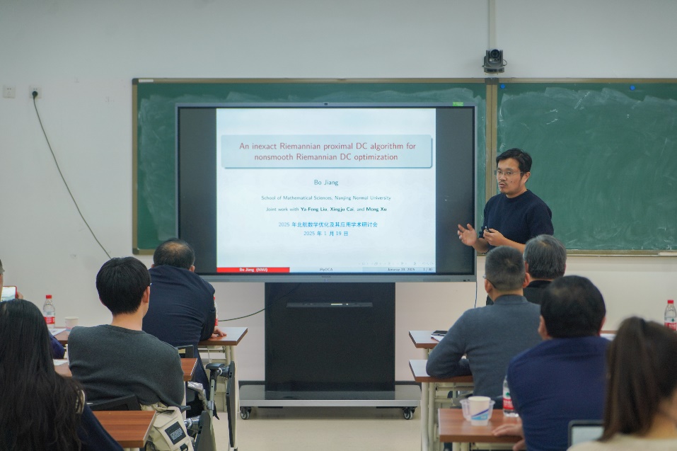 为进一步促进数学优化领域专家学者的交流,探讨数学优化领域的前沿问题和最新研究进展,1月19日,2025年北航数学优化及其应用学术研讨会(冬季)于沙河主楼E404顺利举行,与会师生就随机优化、半定规划、流形优化、非光滑优化等前沿问题及其在图像处理、交通配流、机器学习等领域的应用进行讨论。